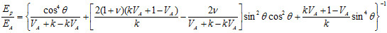 梯度结构取向效应:针对不同生物材料宏观外形与微观组织结构的取向变化,他们首次提出了新型材料组织结构取向梯度(Gradient Structural Orientation)的概念与设计原则,从材料力学的角度建立了梯度组织结构取向与刚度、强度、断裂韧性之间的系列定量关系,例如杨氏模量与取向角度之间具有如下定量关系: